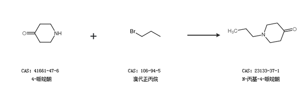 1.通過(guò)4-哌啶酮和溴代正丙烷合成N-丙基-4-哌啶酮