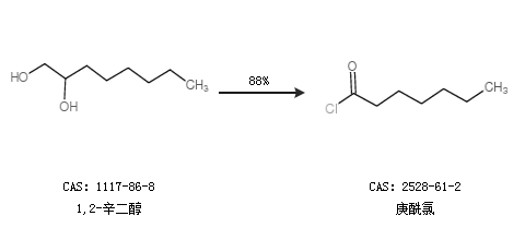 庚酰氯(2528-61-2)為無色液體。熔點-83.8℃,沸點173℃,相對密度0.9590(20/4℃),折光率1.4345(18℃),閃點58℃。溶于乙醚。