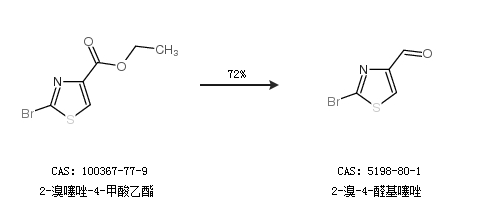 1.通過2-溴噻唑-4-甲酸乙酯合成2-溴-4-醛基噻唑,收率約72%;