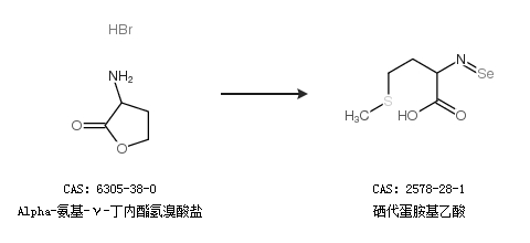 1.通過二甲基二硒醚和Alpha-氨基-γ-丁內(nèi)酯氫溴酸鹽合成硒代蛋胺基乙酸