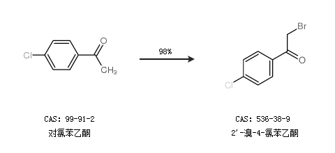 2.通過對(duì)氯苯乙酮合成2''-溴-4-氯苯乙酮,收率約98%;