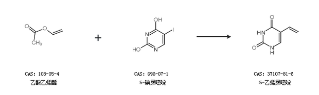 2.通過乙酸乙烯酯和5-碘尿嘧啶合成5-乙烯尿嘧啶