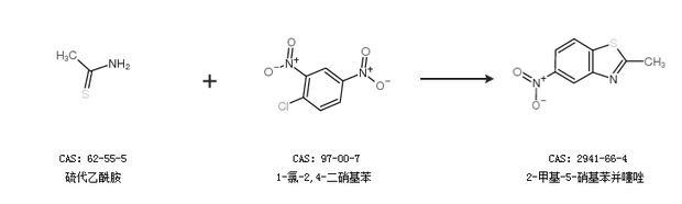 1.通過硫代乙酰胺和1-氯-2,4-二硝基苯合成2-甲基-5-硝基苯并噻唑