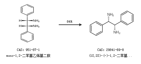 1.通過meso-1,2-二苯基乙烯基二胺合成(1S,2S)-(-)-1,2-二苯基乙二胺,收率約84%;
